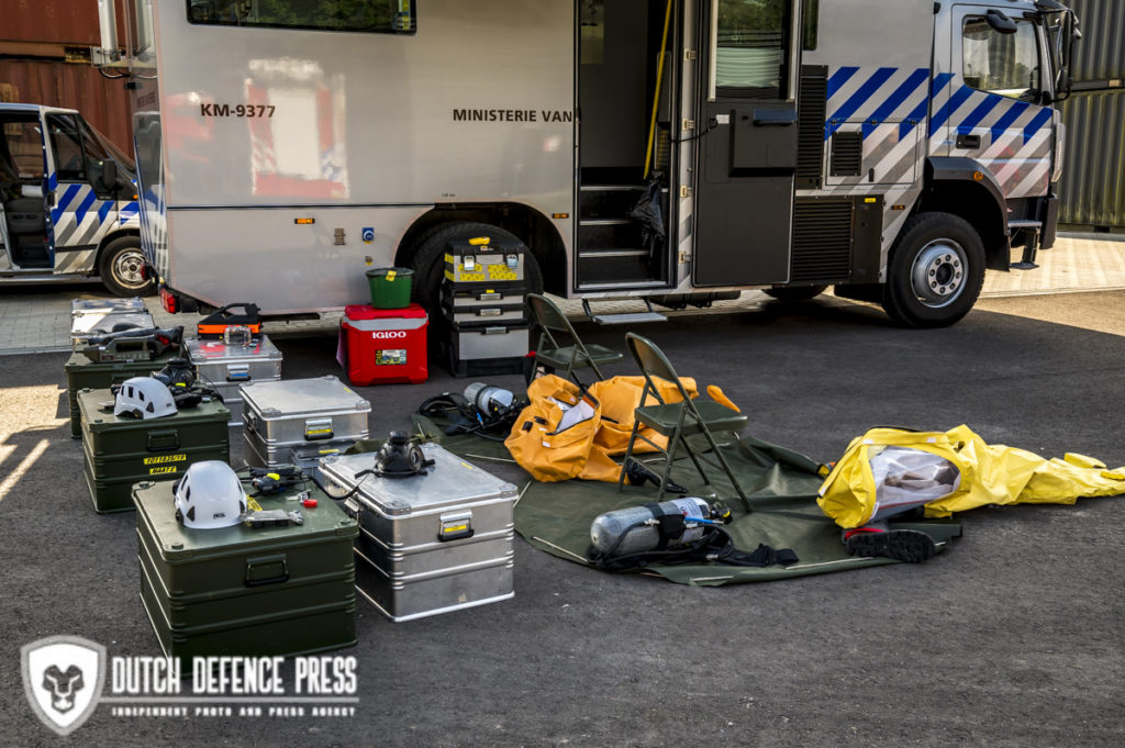 Adjudant Johan is Hoofd Bedrijfsvoering. Hij legt ons uit wat de CBRN Respons eenheid doet. “Wij zijn er voor het ondersteunen van Nationale Operaties (hulp van Defensie binnen de landsgrenzen. GvO), voornamelijk op het gebied van Chemical Warfare Agents (CWA). Wij kunnen ook industriële gassen en andere stoffen meten. Maar wij zijn er specifiek voor als er een dreiging is, of wordt vermoed, van een chemisch of biologisch wapen.”