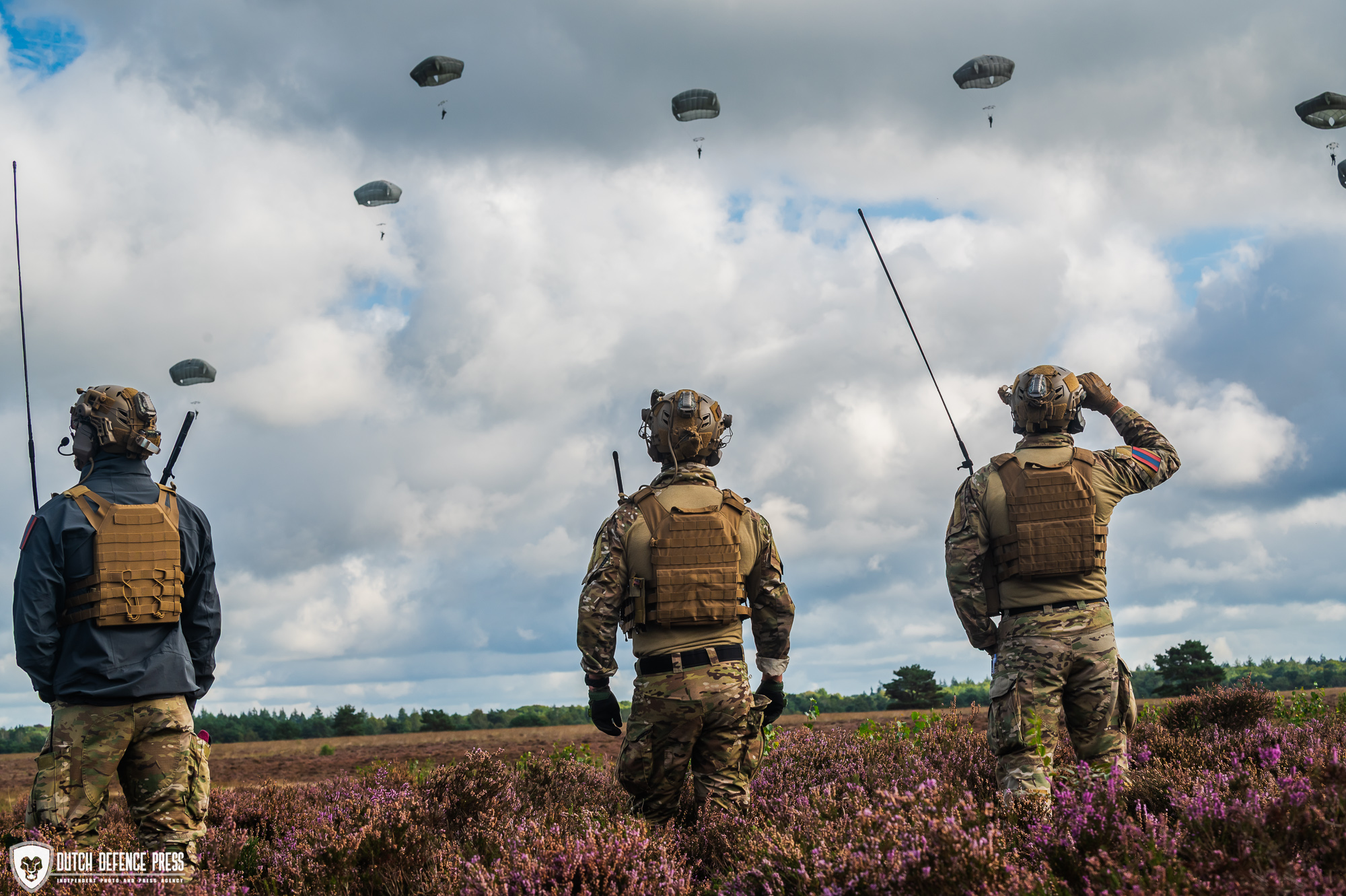 De eerste jaren na oprichting kenmerkten zich door pionieren. Opleidingen werden gevolgd bij Britse, Belgische en Amerikaanse eenheden, simpelweg omdat in Nederland de expertise ontbrak. Toch groeide langzaam maar zeker een eigen doctrine. Een keerpunt kwam in 2013 tijdens oefening Cerberus Guard, toen de Pathfinders voor het eerst een volledige Tactical Air Landing Operation (TALO) uitvoerden met de luchtmobiele brigade. De Landmacht erkende: dit is niet slechts een ondersteunende taak, dit is kerncapaciteit. Sindsdien heeft het peloton zijn takenpakket voortdurend aangescherpt. Het zwaartepunt ligt nu op drie types zones: Drop Zones (DZ), Helicopter Landing Zones (HLS) en Landing Zones (LZ) voor fixed-wingtoestellen. De meest complexe van die drie – de LZ – vormt tegenwoordig de focus. In scenario’s waar een vliegveld onbruikbaar is, zoals tijdens de orkaan Irma in 2017 op Sint Maarten, bleken de Pathfinders onmisbaar. Met beperkte middelen en veel vakmanschap kregen zij de luchthaven weer operationeel. “Dat is dus precies de rol waar we voor zijn”, legt Cor uit. “We zijn met een team die kant op gegaan. We hebben daar de staat van het vliegveld gecontroleerd en vrijgemaakt van obstakels. In de verkeerstoren hebben we verbindingsmiddelen van onszelf ingezet en het toren- en luchthavenpersoneel ondersteund in het open krijgen van de luchthaven. We hebben dat natuurlijk niet alleen gedaan, maar met hulp van internationale partners.”