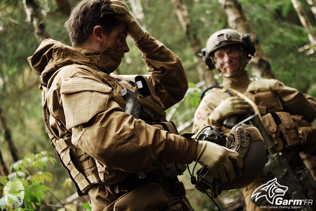 But using the right fabric is not all NFM has put into GARM®. In the design of the clothing the designers took ‘muscle memory’ into account. Muscle memory is being able to repeat a movement or procedure automatically, like changing a magazine in a rifle. Soldiers train for these often to be able to do the movements without thinking about them knowingly. So if you put the pockets on all the layers of clothing in the same spot, with the same size and with the same way of opening, taking something out of them in a combat situation can be trained as well and performed by muscle memory when in that situation. All the soldier has to do is put his stuff into the outer most layer and change them over when putting on or taking of layers. It might look strange but imagine troops training in wet and cold Europe for their deployment in hot and dry Afghanistan. There is a good chance that they will wear a parka in training and a combat shirt in theatre. So where do you store your tourniquet or compass or other essential items. Your parka might have buttons on all the pockets but the combat shirt has hook and loop. Under fire in the combat zone you are trying to find the button on the pocket with your hand. You keep your eyes on potential targets so you don’t want to look down to what you are doing. But you are wearing a shirt now which has hook and loop. It takes you valuable seconds to get your head around the problem, taking your mind of the threats around you. It is not something you want. With Garm® it is not something that will happen. The different clothing lines all have an identical lay-out. You don’t need to look down because you have done this hundreds of times in training.