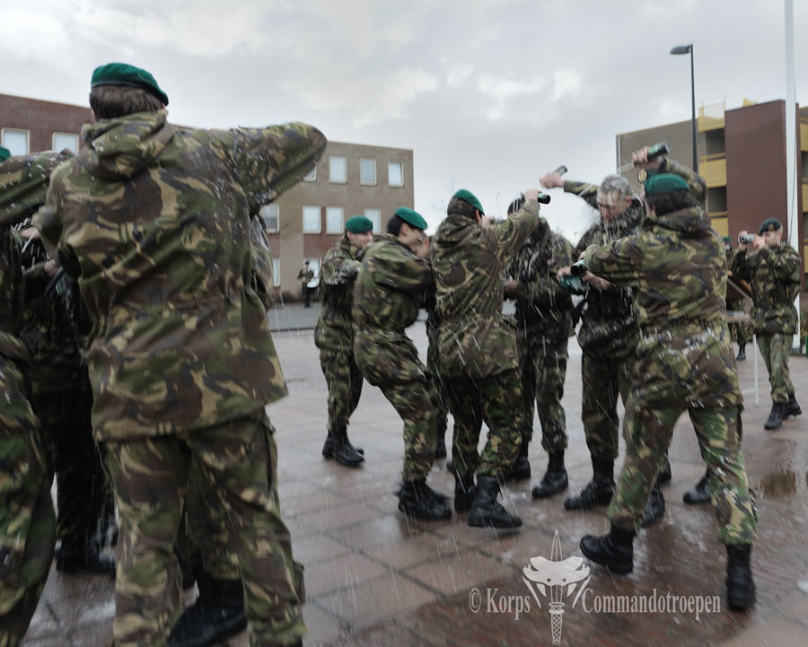 In de vroege donkere uurtjes van vrijdag 16 december 2011 staan op de Engelbrecht van Nassaukazerne in Roosendaal vele familieleden en vrienden geduldig hun relaties op te wachten. Samen met het bijna voltallige personeel van het Korps Commandotroepen (KCT) trotseren ze het bedroevend slechte weer. De regen valt met bakken uit de lucht en velen van de genodigden gingen dan ook schuil onder paraplu’s.