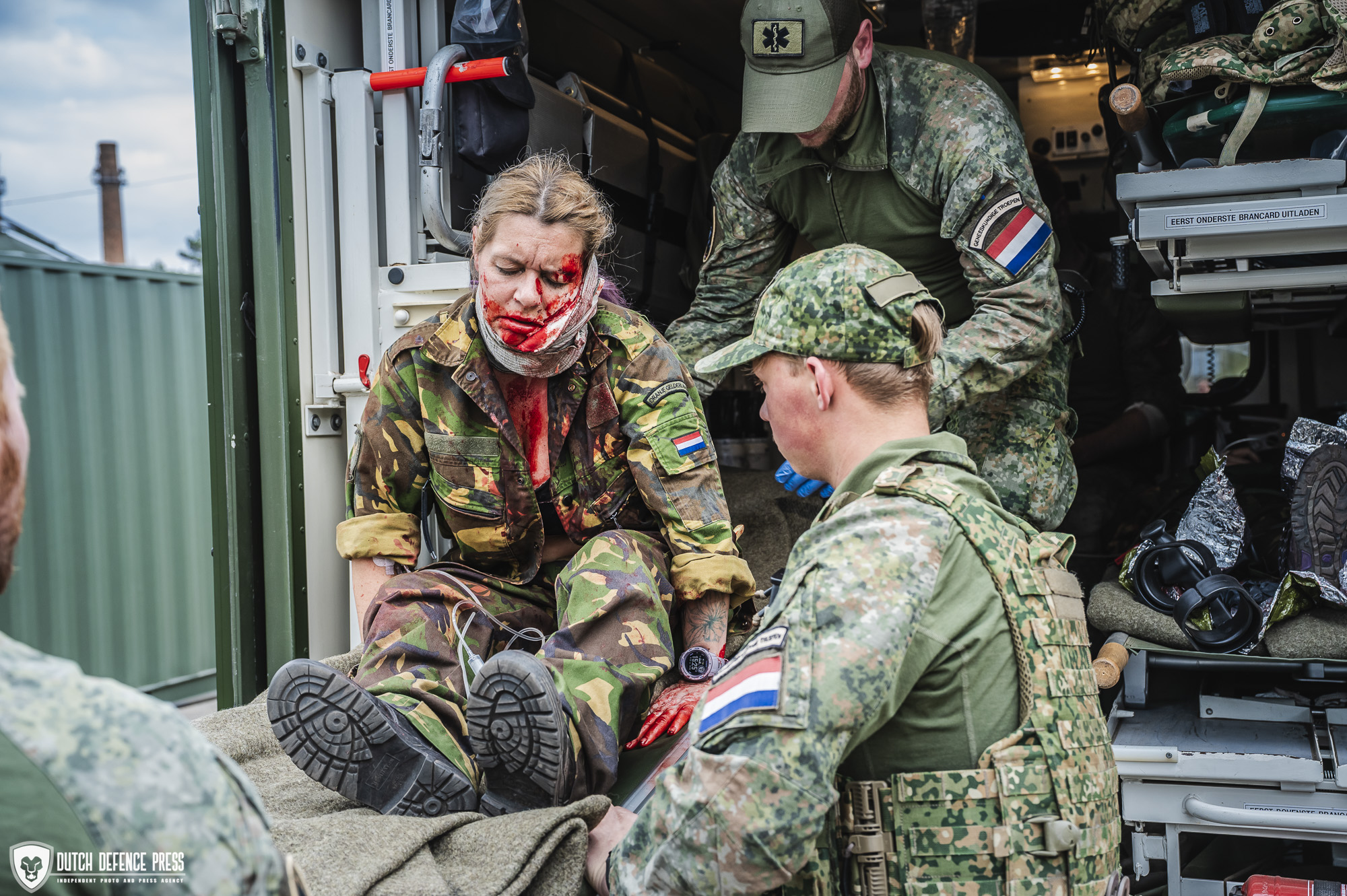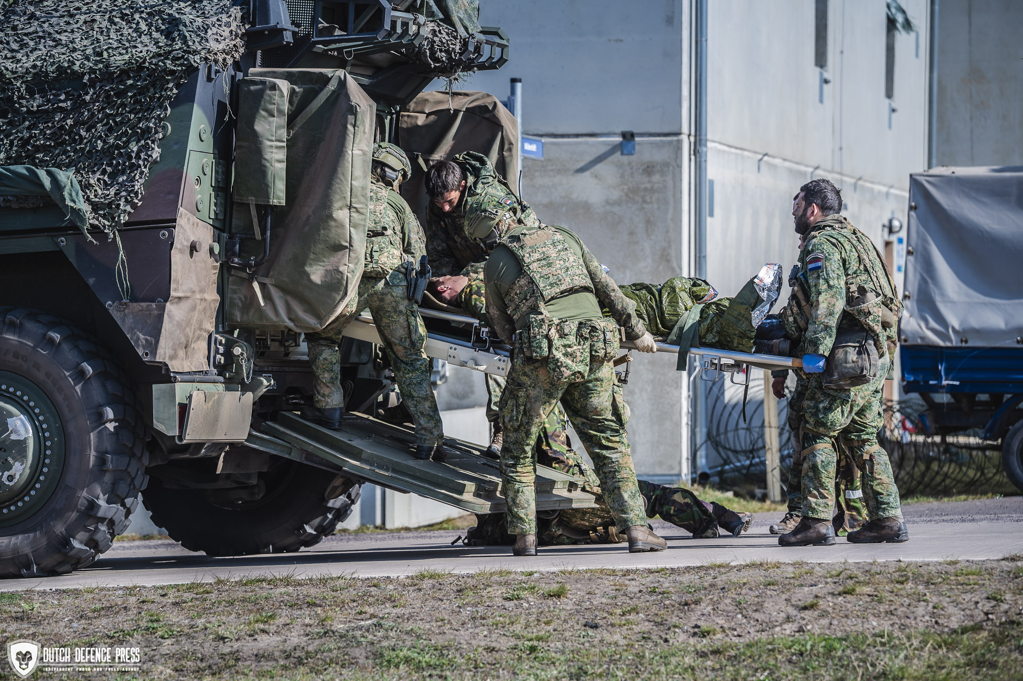 Bij dat laatste worden de gewonden naar een veilige plek gebracht waar ook een militaire ambulance kan komen. Die zijn er in alle vormen en maten. Defensie heeft hiervoor gepantserde Boxer-ambulances die een gewonde veilig uit het gevechtsgebied kunnen halen. Er kan ook worden gekozen voor evacuatie door bijvoorbeeld een helikopter als die beschikbaar is en veilig het gebied kan bereiken. In de ambulance verschilt de uitrusting niet veel van die van onze civiele ambulances. De gewonde komt dan in de zorg van militair verpleegkundigen die. De gewonden worden zo snel mogelijk afgevoerd naar een Role 1, een voorwaartse medische post van de brigade. Hier wordt de gewonde verder onderzocht door medisch personeel.