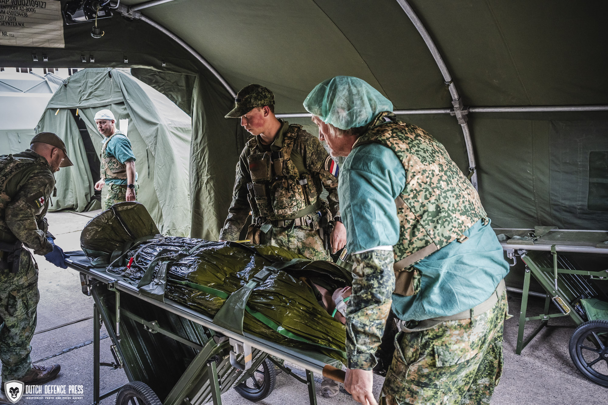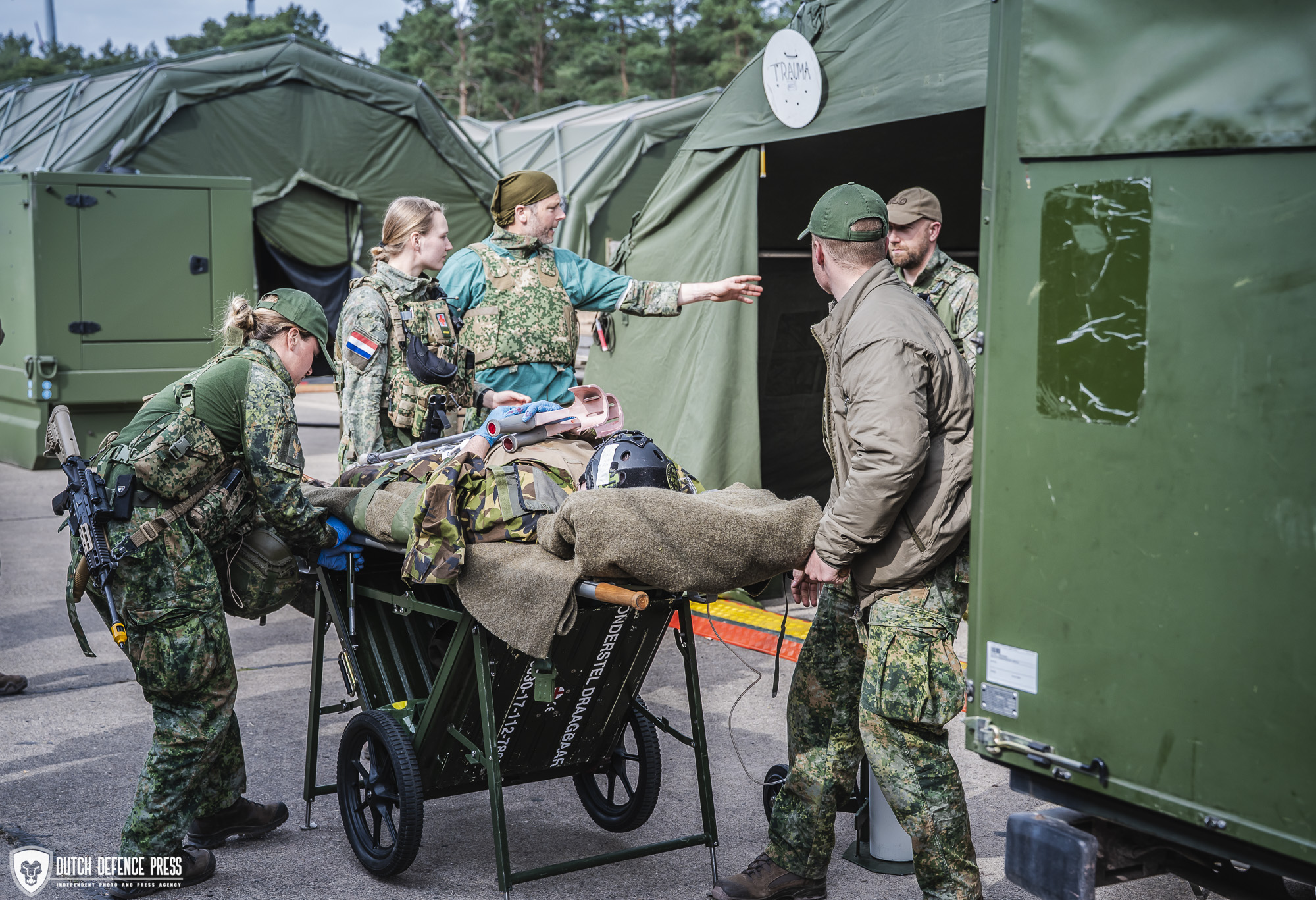 Wat je in een burgerziekenhuis niet zo snel zal zien, is een chirurg of anesthesioloog die buiten triage doet en vervolgens fysiek meehelpt om de gewonde militair, maar ook burgers, naar binnen te dragen. Tijdens de oefening stonden deze medisch specialisten, vaak wat ouder dan de militairen om hen heen, bij de arriverende ambulances om de gewonden te beoordelen, de zogenoemde triage. Daarbij wordt nogmaals gekeken, triage gebeurt op alle niveaus, welke verwondingen de gewonden hebben, wat de levensverwachting is en welke behandelingen nodig zijn. Zeker als er veel gewonden tegelijk binnenkomen, wordt in de triage gekeken hoe de meeste gewonden in leven kunnen worden gehouden met de beschikbare middelen en het personeel. Nog voor de triage worden de gewonden gecontroleerd op wapens en munitie, zodat er verder veilig gewerkt kan worden.