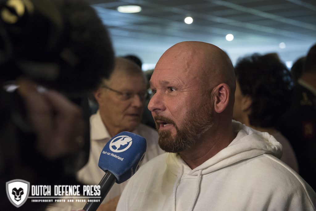 Een zichtbaar en hoorbaar emotionele Marco Kroon stond zaterdagmiddag op het podium van Veteranen Ontmoetingscentrum “Ouwestomp”. Hij bedankte de vele aanwezigen die waren gekomen om de uitreiking van het eerste exemplaar van zijn nieuwe boek “Kroongetuige” bij te wonen. Ontvanger van het eerste exemplaar was Commandant Landstrijdkrachten luitenant-generaal Leo Beulen.
