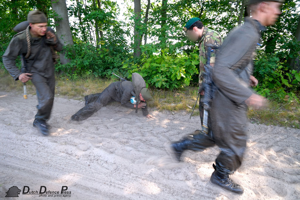 The pressure is applied straight away with a forced march to the ECO’s own small camp in the woods near Roosendaal. This will be the candidates home away from home for the duration of the course. Here they are issued a cot and three blankets. They will live out of their rucksacks and dufflebag with only the items they were allowed to pack. The cot is more of a token, they will spent most of their weekdays outside. Weekends are spent eating and sleeping at home.